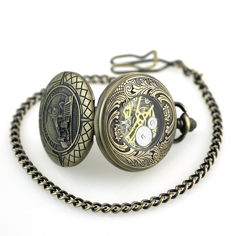 Locomotive Flip Mechanical Pocket Watch Hollow Movement Retro Men And Women Student Old Watch